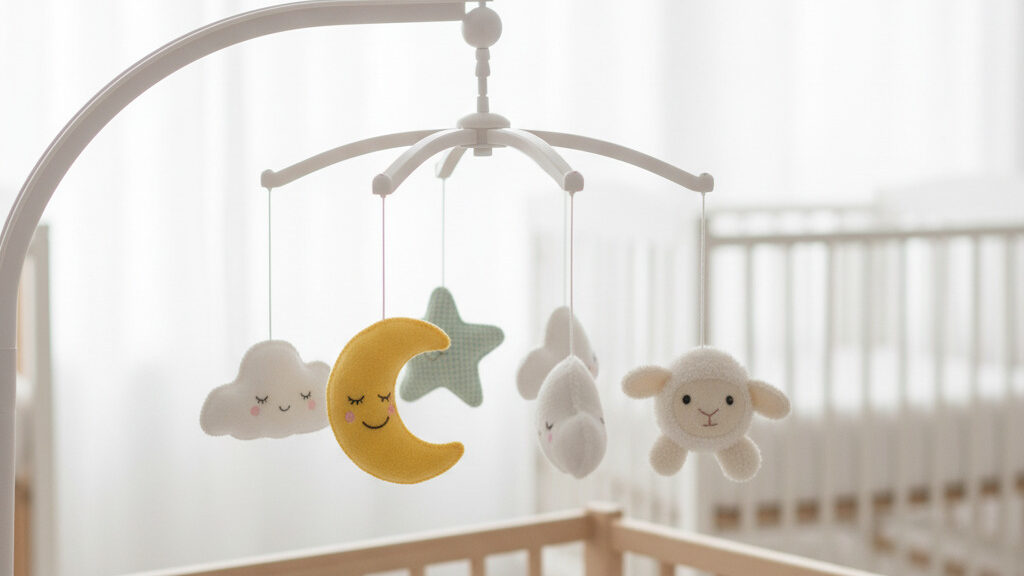ベッドメリーは、赤ちゃんの眠りや遊び時間を穏やかにサポートしてくれるおもちゃです。